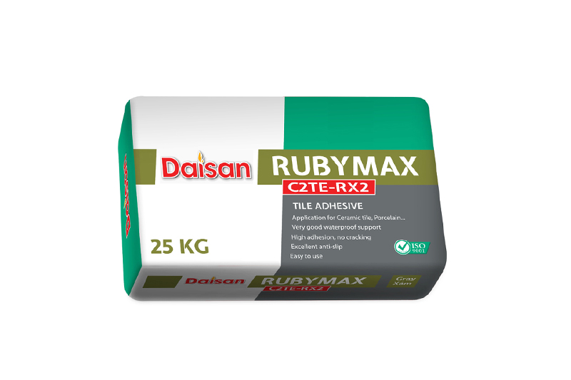 Keo dán gạch đá Rubymax là dòng sản phẩm được sản xuất trực tiếp bởi Daisanhouse. Loại vật liệu này có dạng bột, màu trắng hoặc xám có thành phần gồm xi măng, chất nhớt hóa dẻo, chất kết dính, chất chống rạn nứt, cát tinh lọc, nhựa tổng hợp và phụ gia đặc biệt được sản xuất theo công nghệ Italia.